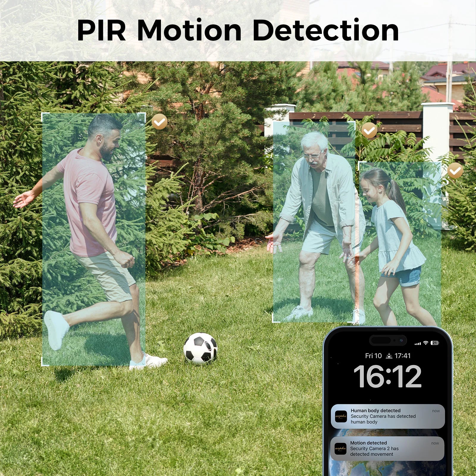 Precise Detection, Intelligent Protection: Advanced PIR human detection technology accurately recognizes human movement in the surveillance area, effectively filters out false alarms, so you don't miss any important situations. You can customize the monitoring area to focus on key locations, providing you with more targeted security protection and guarding your family's safety.