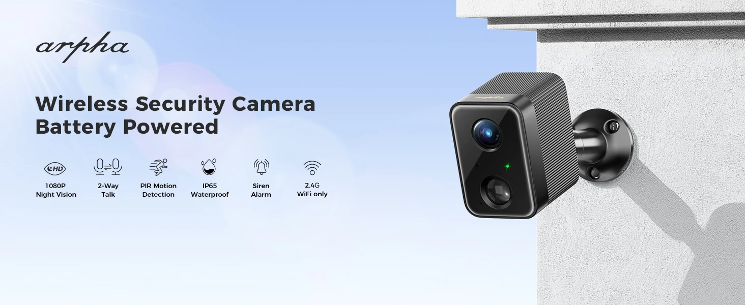 Arpha 1080P Wifi Security Camera Outdoor&Home Surveillance Camera Night Vision 2 Way Audio with Alarm Ip Camera Cloud Storage