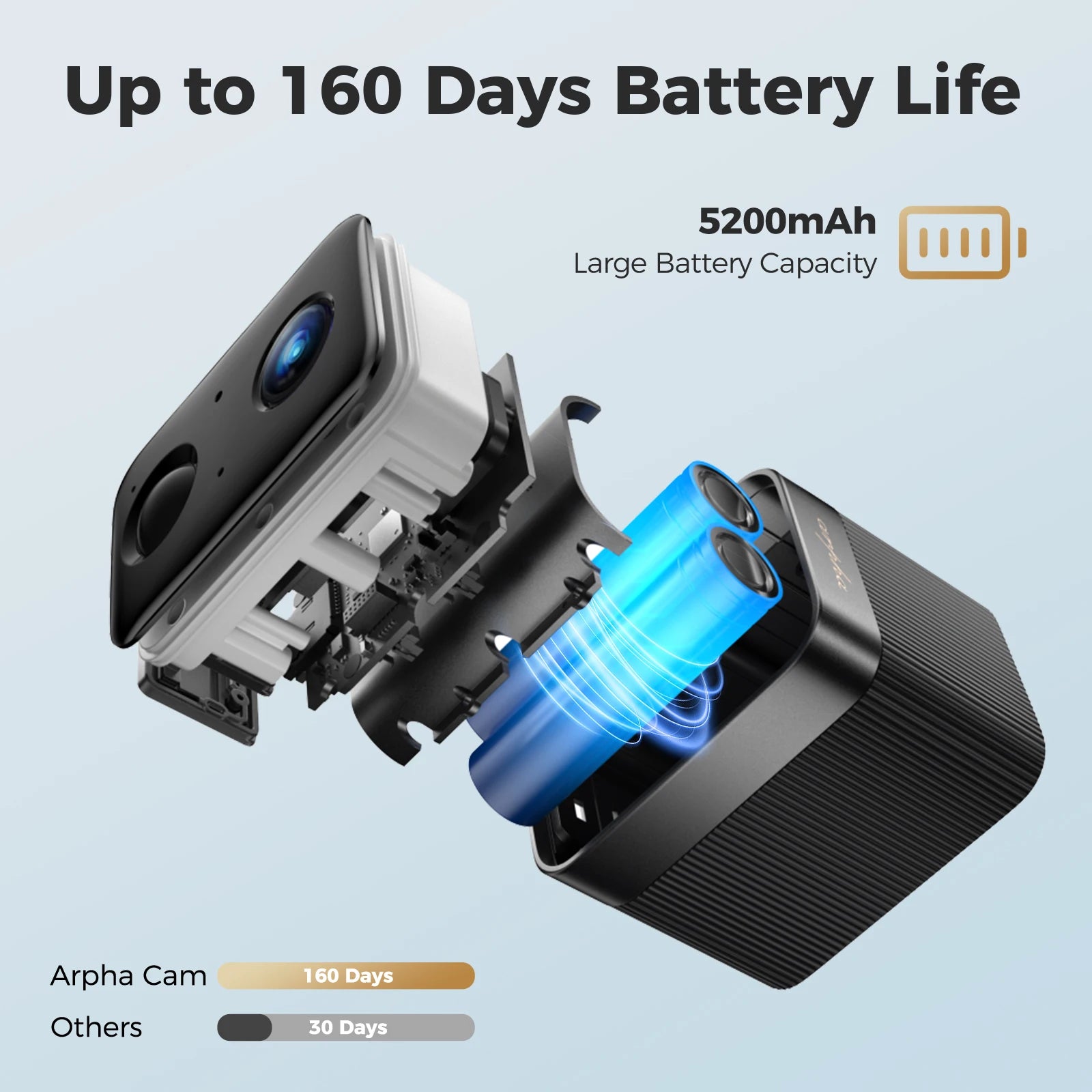 Wireless Convenience and Long-Lasting Life: With 2.4G WiFi connection, it is free from power and network cables, and can be installed wherever you need it. Built-in 5200mAh high-capacity battery can run continuously for up to 3-5 months on a single charge, which reduces the hassle of frequent recharging and continues to protect your home.