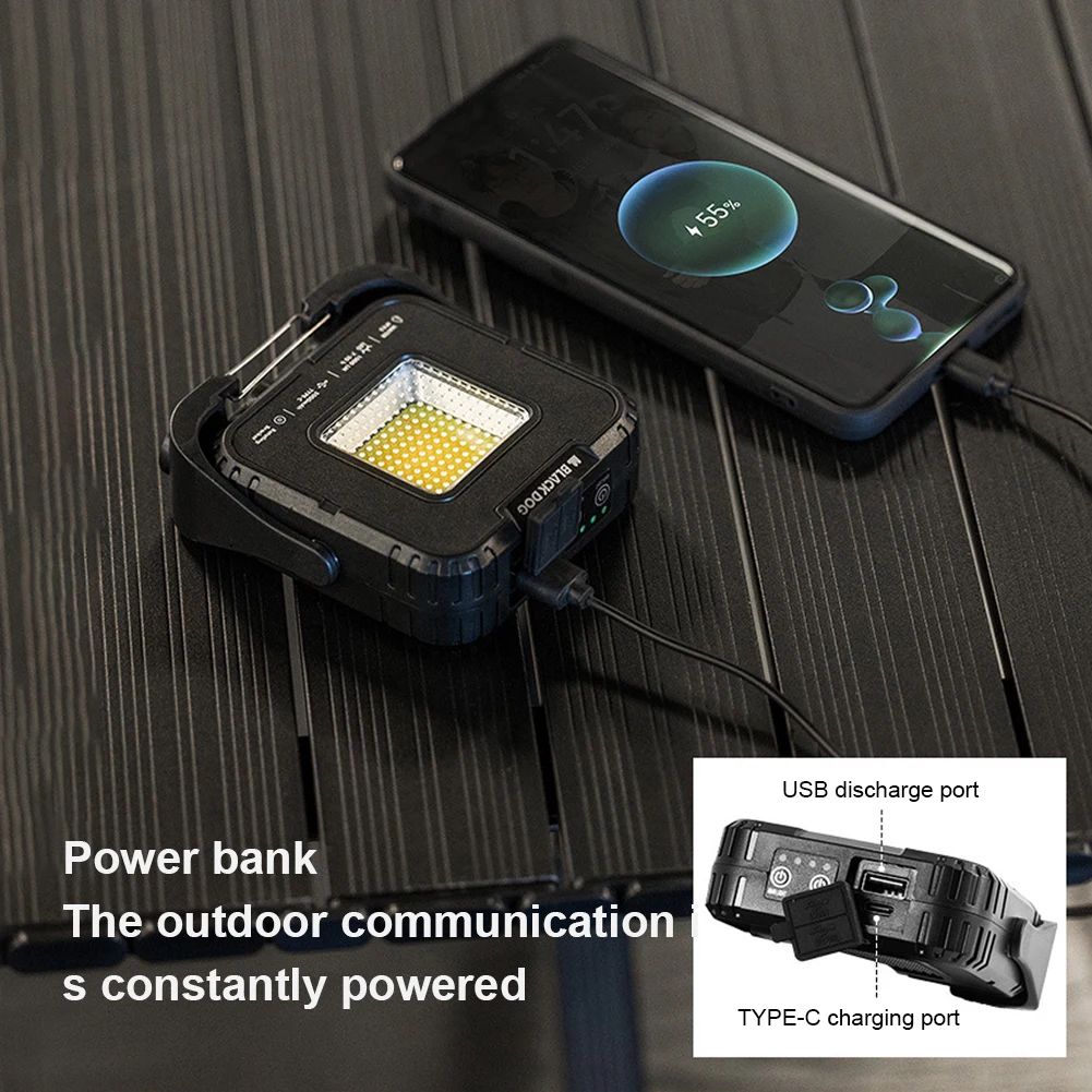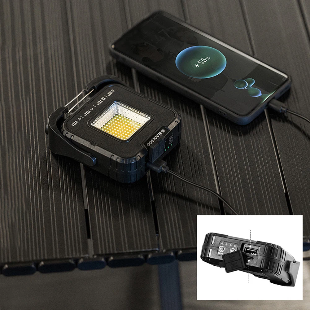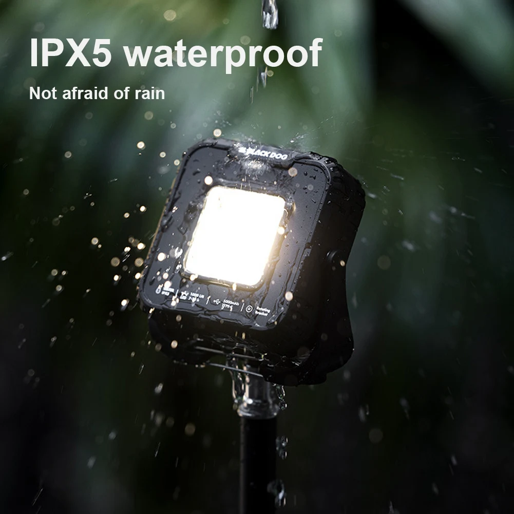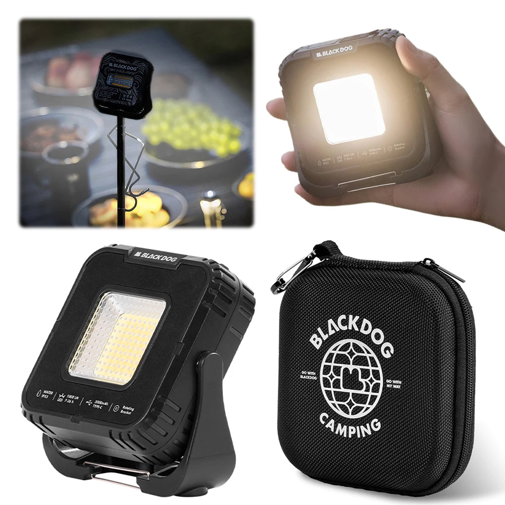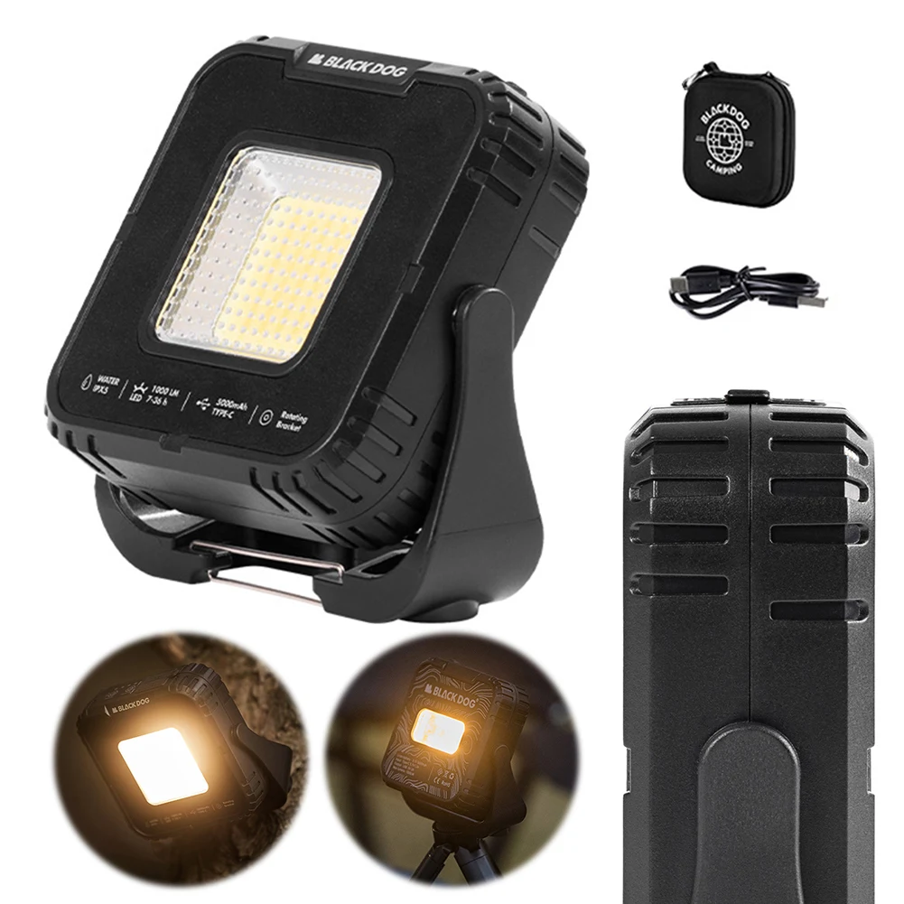 Features: 1.Rugged All-Terrain Design: Crafted with a sturdy ABS shell, this outdoor camping light is built to withstand drops. It boasts 1000 lumens, catering to diverse usage scenarios and demands. 2.Infinite Dimming Options: The primary portable tent lamp offers four adjustable color temperatures, while the secondary lamp has two settings for personalized lighting experiences. 3.Powerful Battery Backup: Equipped with a 5000mAh lithium battery, this camping flashlight can provide emergency charging for your phone or other small devices, ensuring you're never out of power. 4.Versatile Mounting Solutions: With standing, hanging, and magnetic options, this atmosphere lantern adapts to different environments. It also features a 1/4 thread interface compatible with various stands. 5.360° Adjustable Lighting: This multi-function emergency lamp allows comprehensive angle adjustments, providing optimal illumination for any situation. Specification: Origin: Mainland China Material: PC+ABS Weight: 173g Size: 10cm/3.94in*9.4cm/3.7in*3.2cm/1.26in Color: Black Light Source: Tungsten Filament + COB Main Light Mode: 1st Gear Warm White Light (1000lm/Battery Life About 7h), 2nd Gear White Light (700lm/Battery Life About 10h), 3rd Gear Warm Light (680lm/Battery Life About 10h), 4th Gear Red Light (100lm/Battery Life About 20h) Secondary Light Mode: 1st Gear Light Bar Warm Light (120lm/About 18h), 2nd Gear Patch Red Light Flashing (80lm/About 36h) Battery Capacity: 5000mAh Color Temperature: 1800k-5500K Illumination Area: 20㎡ Input Mode: Type-C 3.7V 1.2A Output Mode: Usb 5V 2A Waterproof Level: IPX5 Stepless Dimming: Yes