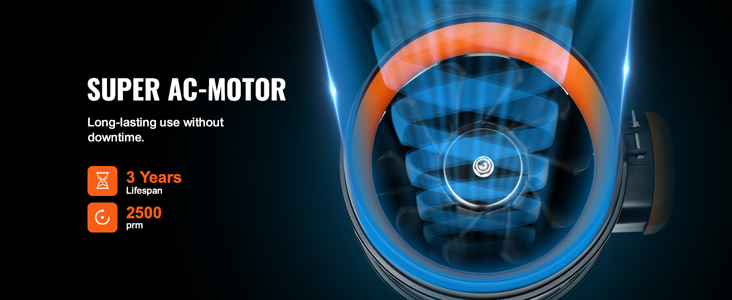 Power in Silence: Are you tired of loud, obnoxious ducts? Well, get ready to work in silence! Our inline exhaust fan is equipped with a high-quality AC motor that ensures strong power at a low noise of 38 dB, which will not disturb your work and life. At the same time, the motor saves 30% on energy consumption, extending its service life.