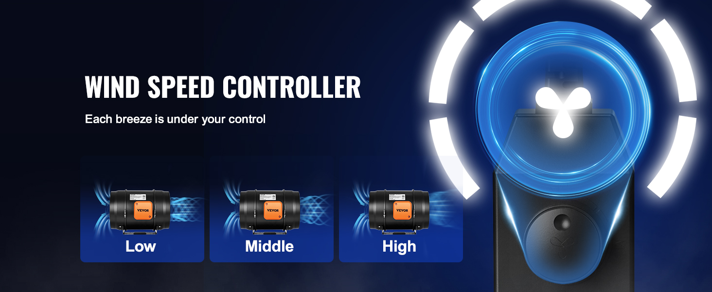 Control you can Feel: Do you want to get various airflow speeds at any time to achieve better ventilation effects while still being in control? Our inline air duct fan can be controlled via the manual knobs. You can adjust the speed to meet the ventilation needs of different environments. What are you waiting for? Go with the flow!